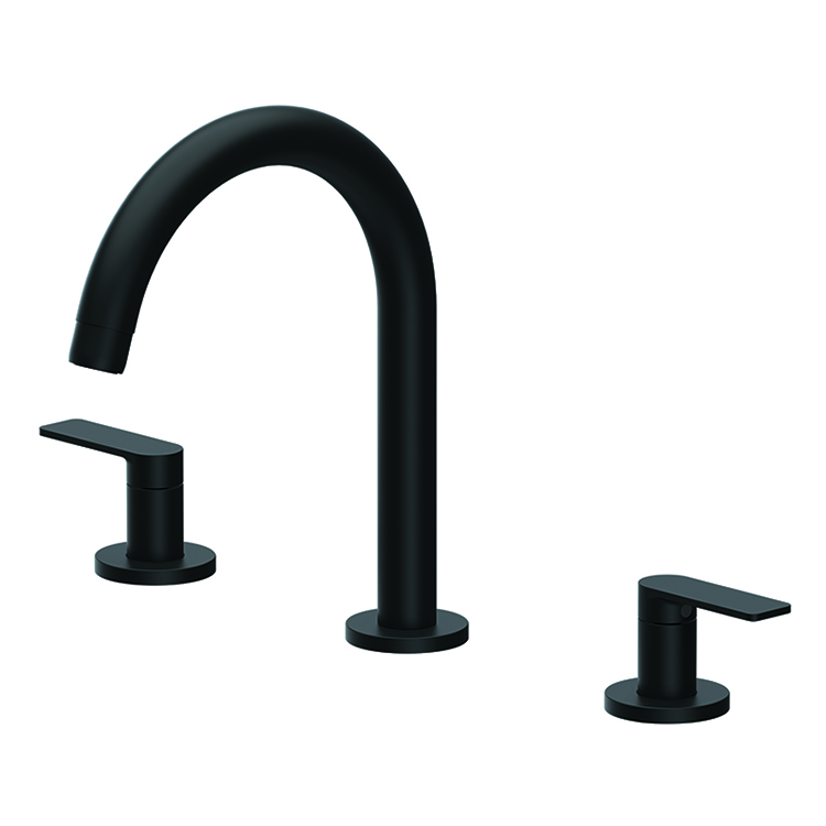 The Remer XN matte black bathroom sink faucet is a perfect addition to your bathroom sink. Constructed out of high-quality brass, this widespread bathroom faucet features modern sleek lever handles that controls the flow and temperature of water and has a spout reach of 8.7 inches. This faucet is CSA approved and certified to NSF/ANSI 372 "lead free" plumbing products as defined by California, Vermont, Maryland and Louisiana state law and by section 1417 of US Safe Drinking Water Act.