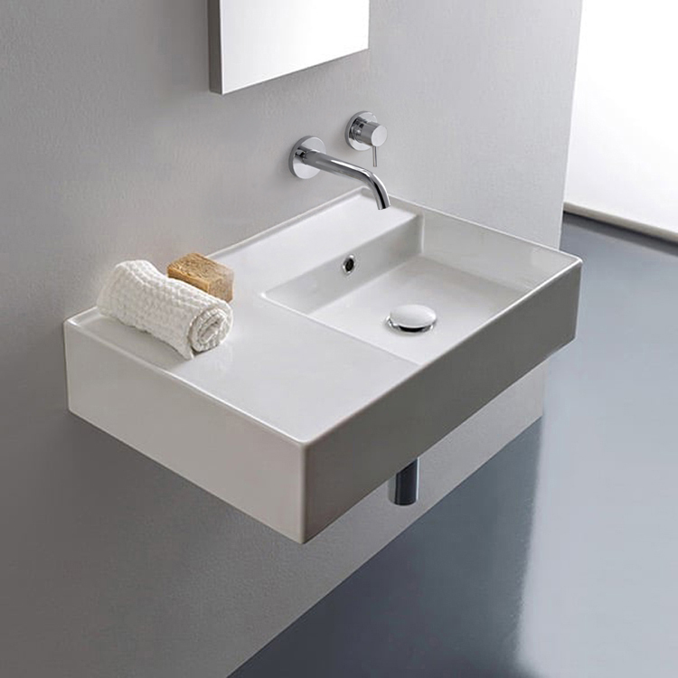 From the Italian designer Scarabeo, this white ceramic sink is part of the Teorema 2.0 collection. The sink comes in a no hole option and equipped with plenty of counter space. It is functional as a wall mounted or vessel application and is perfect for the modern bathroom design.