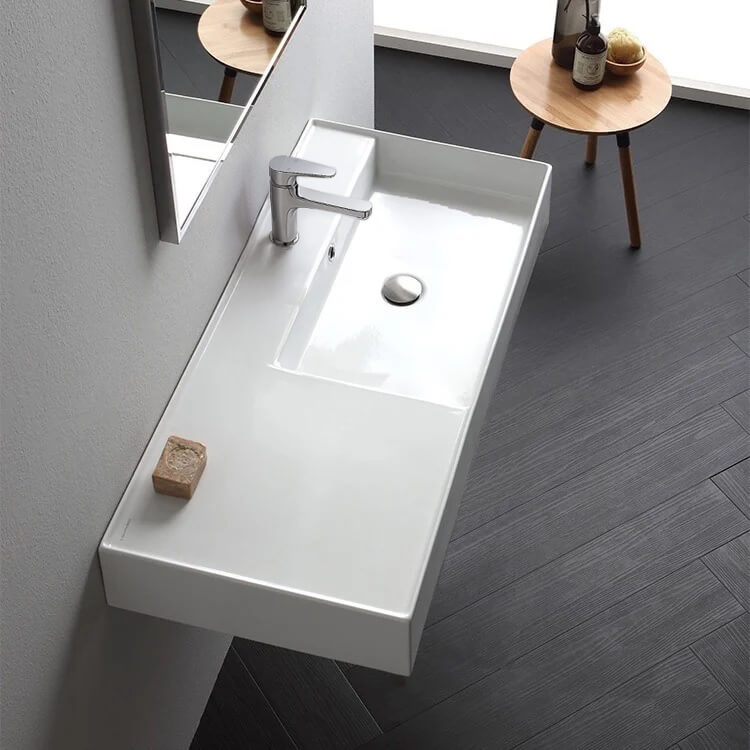 From the Italian designer Scarabeo, this white ceramic sink is part of the Teorema 2.0 collection. The sink comes in a one hole option and equipped with plenty of counter space. It is functional as a wall mounted or vessel application and is perfect for the modern bathroom design.
