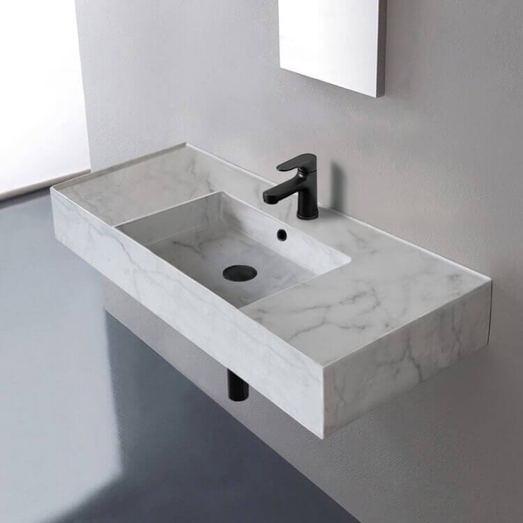 - Rectangular white marble design ceramic sink with counter space