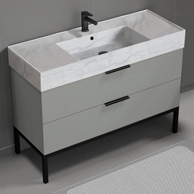 Modern Bathroom Vanity, 48", Marble Style Sink, Free Standing