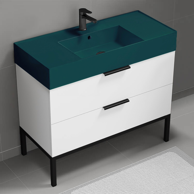 Modern Bathroom Vanity, 40", Green Ceramic Sink, Free Standing