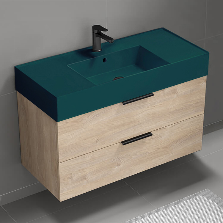 Floating Bathroom Vanity, Modern, 40", Green Ceramic Sink