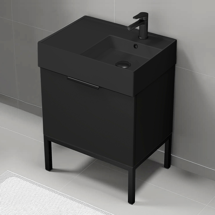 Modern Small Black Bathroom Vanity, 24", Free Standing