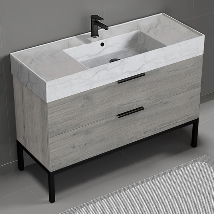 Modern Bathroom Vanity, 48", Marble Style Sink, Free Standing