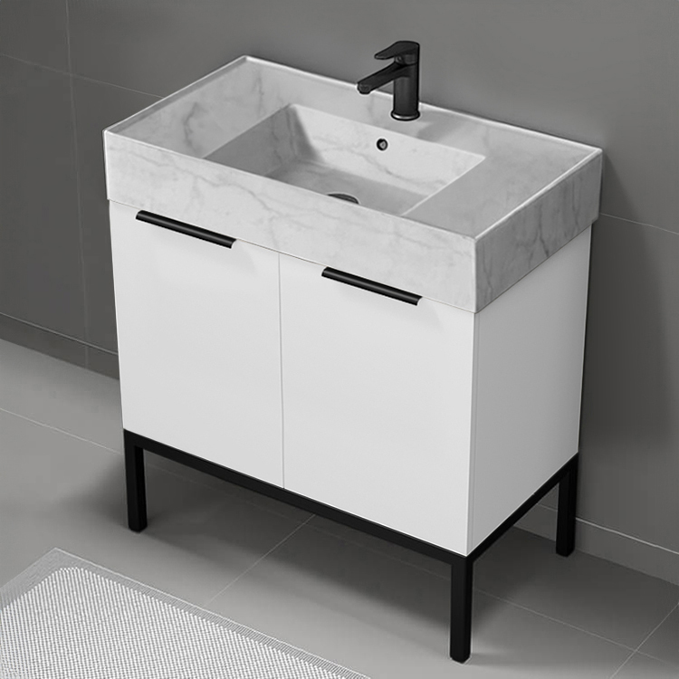 Modern Bathroom Vanity, 32", Marble Style Sink, Free Standing