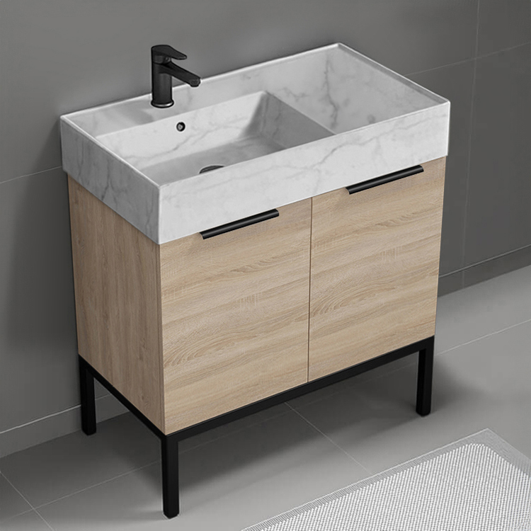Modern Bathroom Vanity, 32", Marble Style Sink, Free Standing