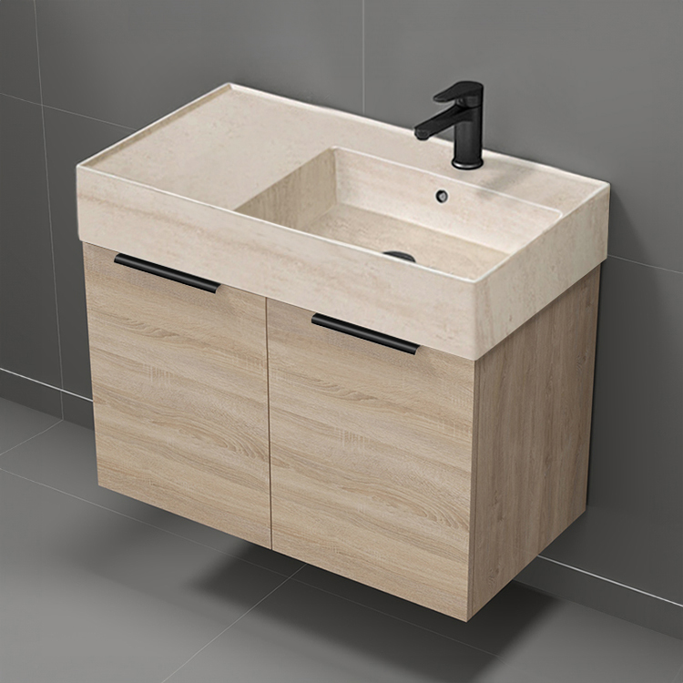 Floating Bathroom Vanity, Modern, 32", Travertine Style Sink