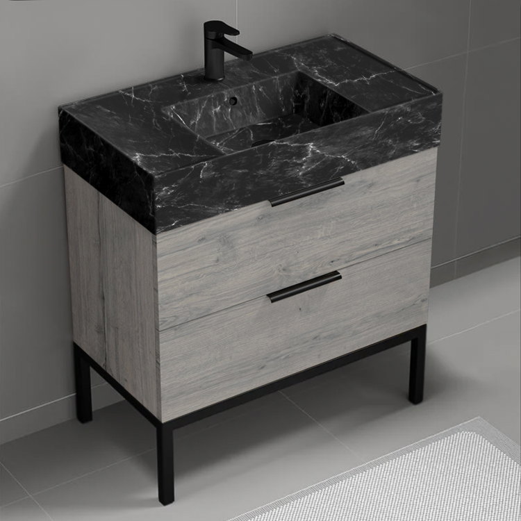 Modern Bathroom Vanity, 32", Black Marble Style Sink, Free Standing