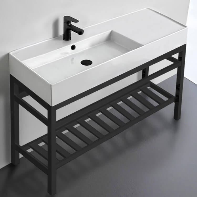 This 48 inch console set was designed by Italian manufacturer Scarabeo. Inspired by the modern or contemporary style bathroom, this console comes with a white ceramic sink and matte black console mount. Featuring a lower towel rack, this console stand is a perfect solution to keep your towels and other accessories tidy. Console stand is made of heavy duty stainless steel in a matte black finish. This console is available in no hole, one hole or three hole settings. It is part of the Teorema 2.0 collection. Ceramic sink (Scarabeo 5121) is US and Canada standards approved (IAPMO, UPC/cUPC, ASME A112.19.2-2018/CSA B45.1-18).