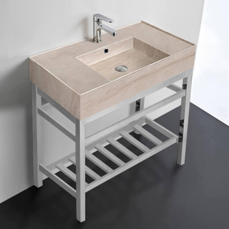 Modern Console Sink Vanity, Travertine Style Sink, 32"