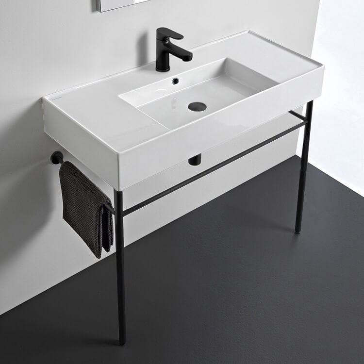 - Console sink with matte black stand