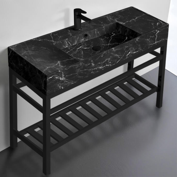 Modern Console Sink Vanity, Black Marble Style Sink, 48"