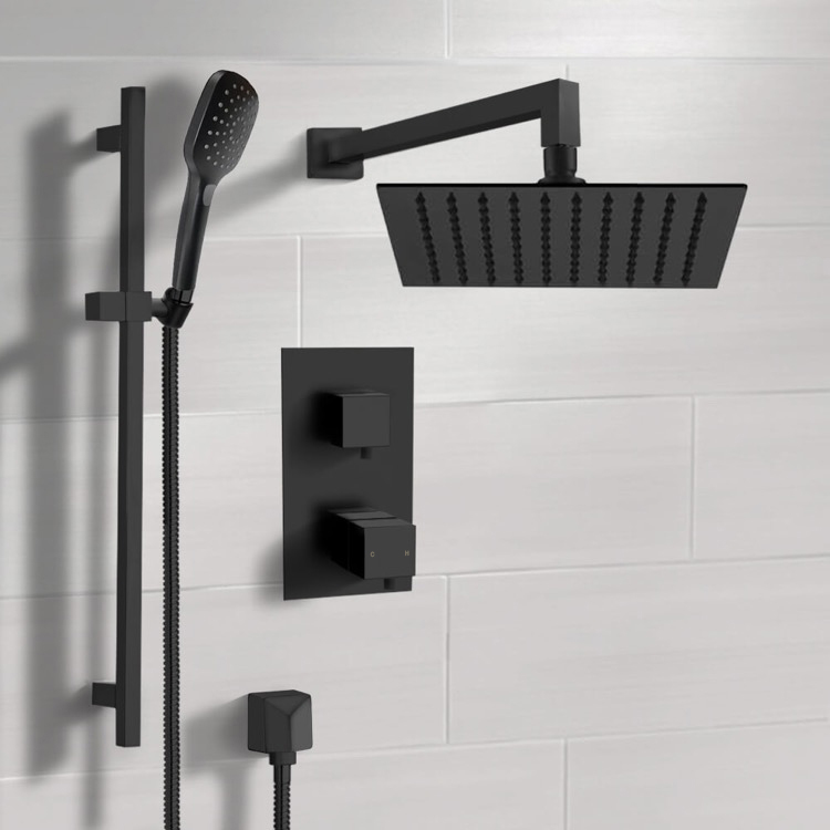 Matte Black Thermostatic Two Way Diverter, Rough-In Valve Included.