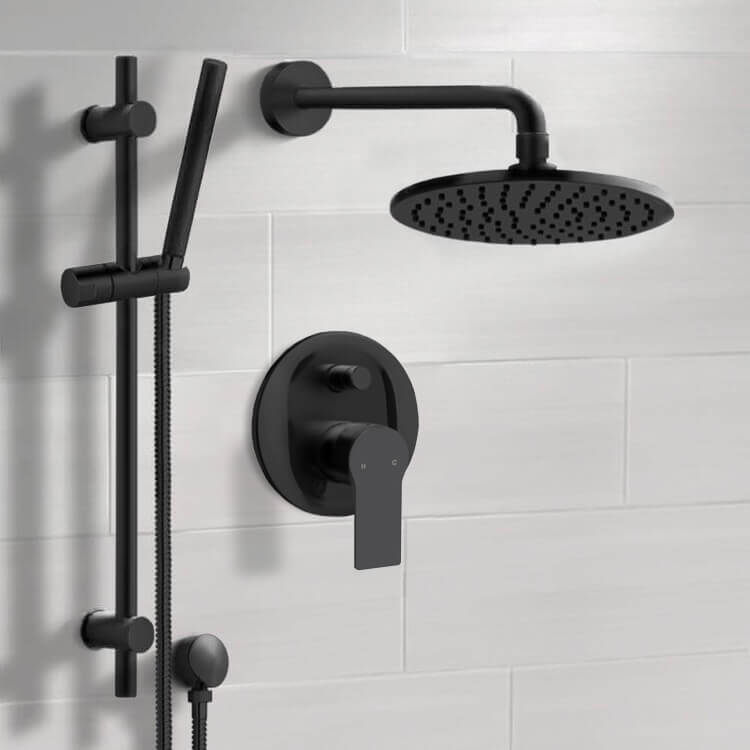 Matte Black Rain Shower System with Handheld, Rain Shower Head, Shower Faucet Set