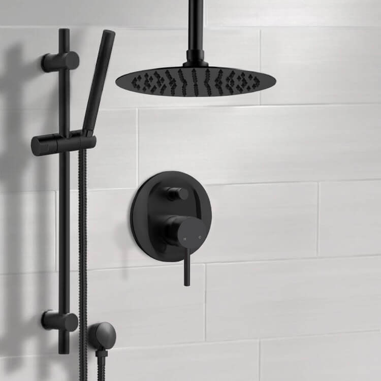 Matte Black Ceiling Rain Shower System with Handheld, Rainfall Shower Head, Shower Faucet Set