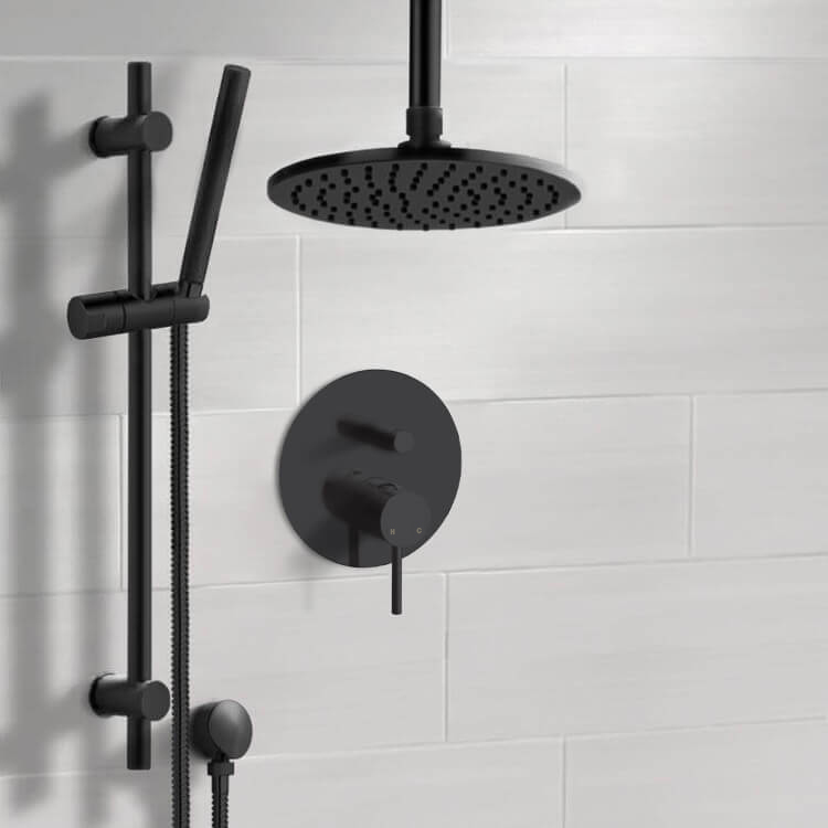 Matte Black Ceiling Rain Shower System with Handheld, Rainfall Shower Head, Shower Faucet Set