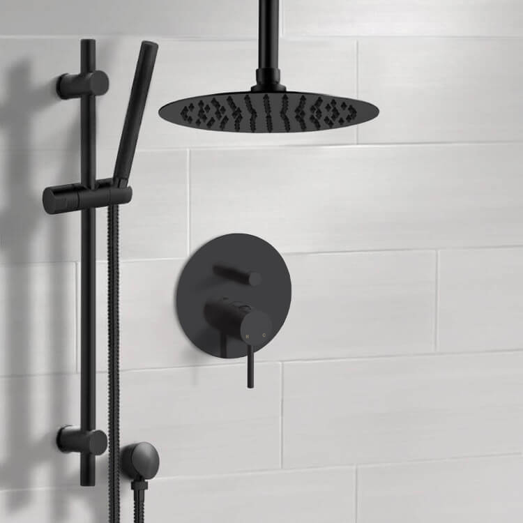 Matte Black Ceiling Rain Shower System with Handheld, Rainfall Shower Head, Shower Faucet Set