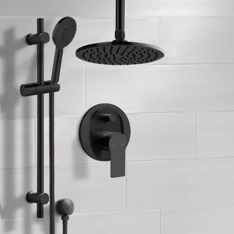 Matte Black Ceiling Rain Shower System with Handheld, Rainfall Shower Head, Shower Faucet Set