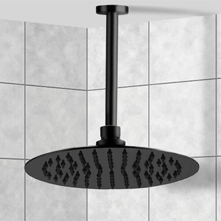 10" Ceiling Mounted Rain Shower Head With Arm, Matte Black