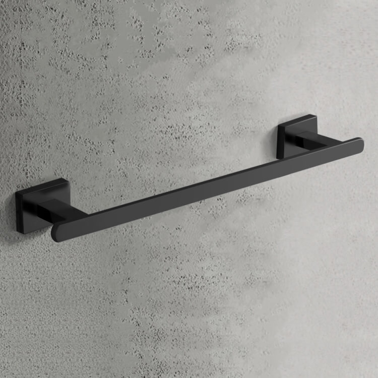 This 12 inch towel bar is part of the Nameeks General Hotel collection. It is wall mounted and is available in a black finish. Made from high quality zinc alloy, this rectangle towel bar is the perfect accessory to add to your contemporary or modern style bathroom.