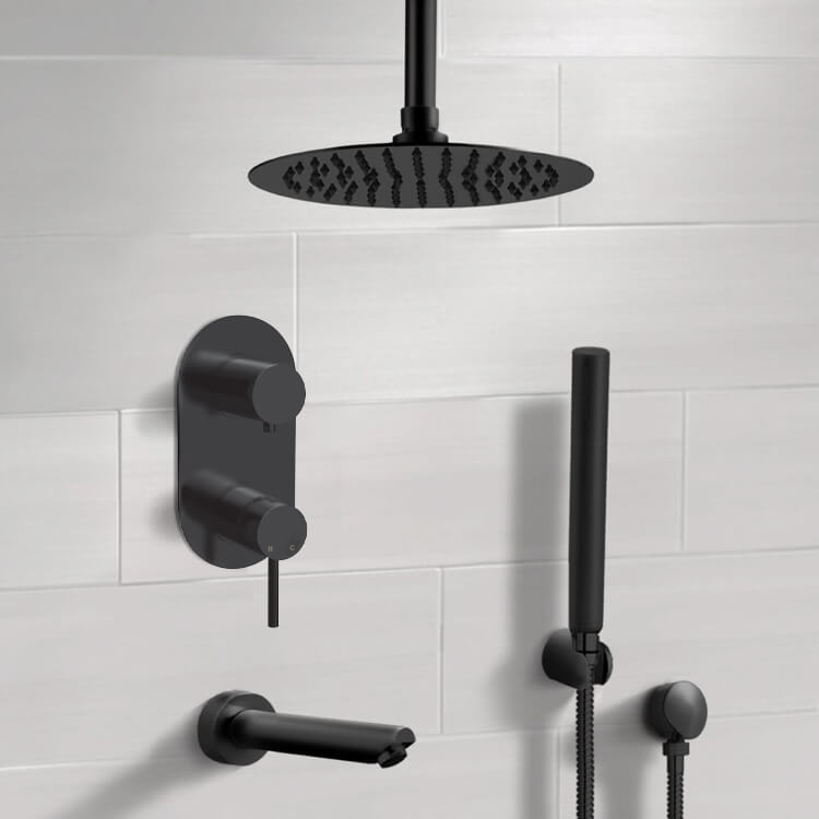 Black Tub and Shower Faucet Set with Handheld and Ceiling Shower Head