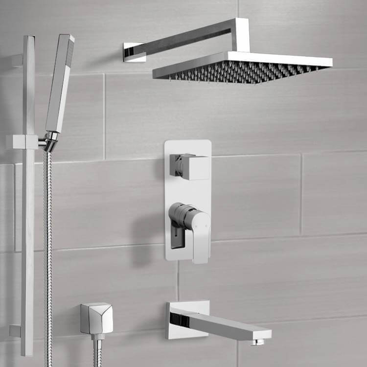 The Remer Galiano tub and shower faucet system is a perfect choice for your bathroom. Constructed out of brass, ABS and stainless steel and with a ceramic disc technology, this all-inclusive tub and shower faucet system includes a beautiful 8" rain shower head, sleek handheld shower, sliding rail and a tub spout in a chrome finish.